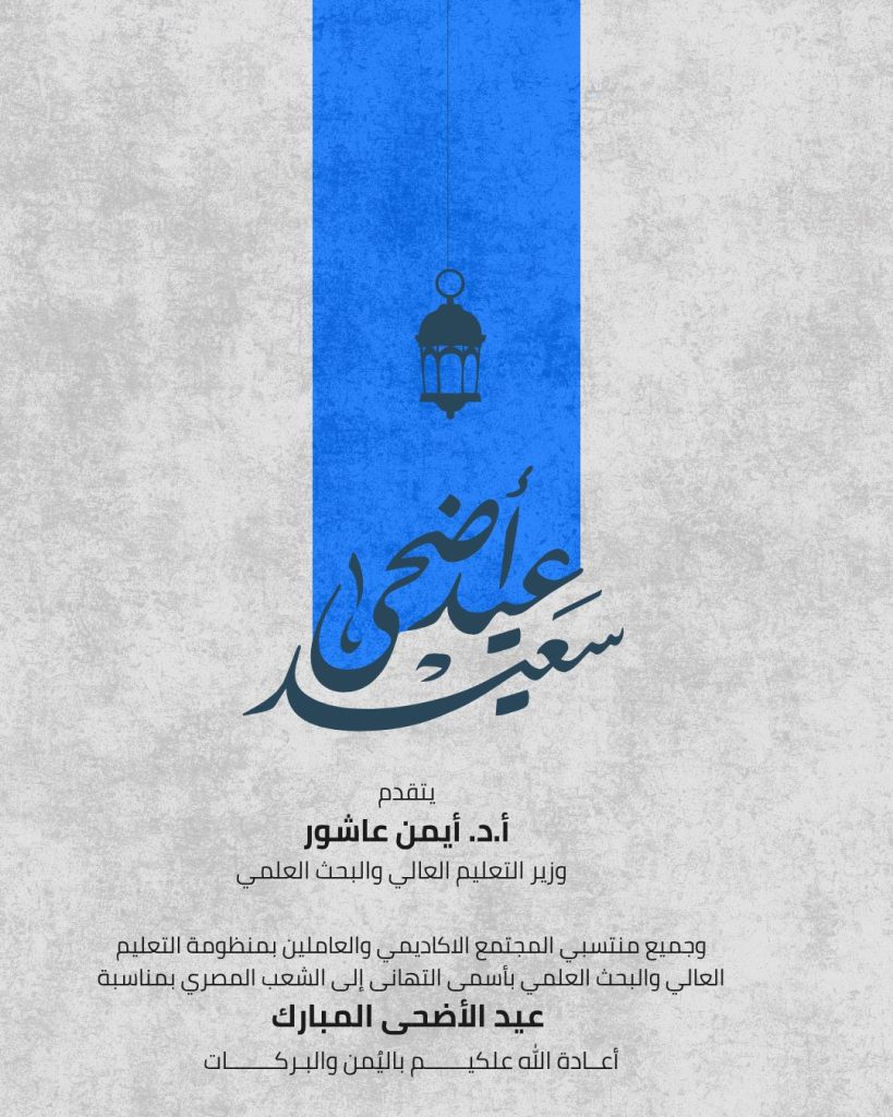 قدم الدكتور أيمن عاشور، وزير التعليم العالي والبحث العلمي،آيات التهاني وأطيب التمنيات إلى الشعب المصري العظيم، بمناسبة حلول “عيد الأضحى المبارك“.