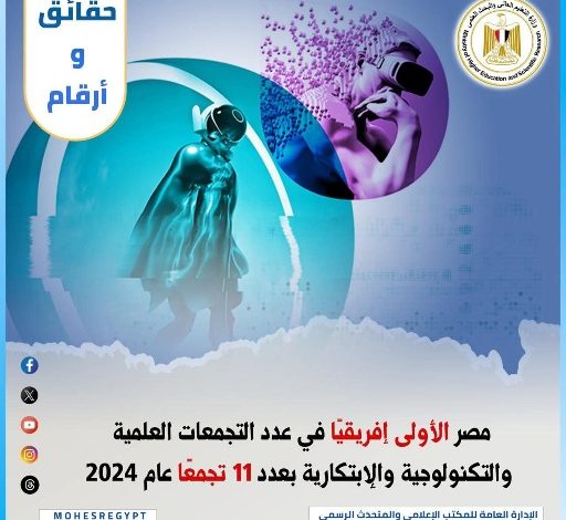 احتلت مصر المرتبة الأولى، على مستوى القارة الإفريقية ،في عدد التجمعات العلمية والتكنولوجية والابتكارية، بإجمالي 11 تجمعًا، خلال عام 2024.