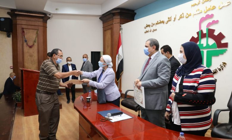 سلم وزير القوى العاملة محمد سعفان، ووزيرتي البيئة الدكتورة ياسمين فؤاد، والتضامن الاجتماعي نيفين القباج اليوم الخميس ، بديوان عام وزارة القوي العاملة ، 30 متدربا شهادات اتمام التدريب علي مهنة التبريد والتكييف للمدربين التابعين لمراكز التدريب التابعة لوزارتي القوي العاملة، والتربية والتعليم والتعليم الفنى ، ومصلحة الكفاية الإنتاجية والتدريب المهني.