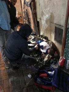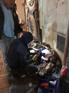وفي الإسكندرية تحرك الفريق لمقر حالة بمنطقة رشدي حيث تبين من خلال دراسة الحالة أن السيدة التي تفترش الطريق لا تحمل بطاقة رقم قومي ولا تعرف سنها فتم طلب الاسعاف و تحويلها لمستشفي رأس التين بالتنسيق مديرية الشئون الصحية وعمل الاشاعات والتحاليل اللازمة لاثبات خلوها من كورونا وبالتنسيق مع الفريق المحلي بمديرية التضامن الاجتماعي بالاسكندرية تم ايداع السيدة بدار الهدايا لرعاية الكبار بلامأوي.