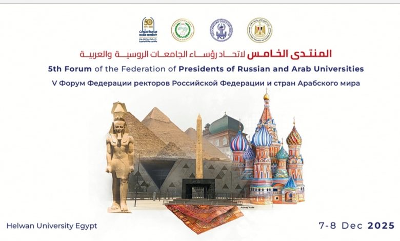 تستعد جامعة حلوان لاستضافة فعاليات المنتدى الخامس لاتحاد رؤساء الجامعات الروسية والعربية، تحت شعار “جسور حضارات المعرفة: التعليم، الابتكار، والمستقبل المستدام”، وذلك يومي (7 و8 )ديسمبر 2025 بمجمع الفنون والثقافة .