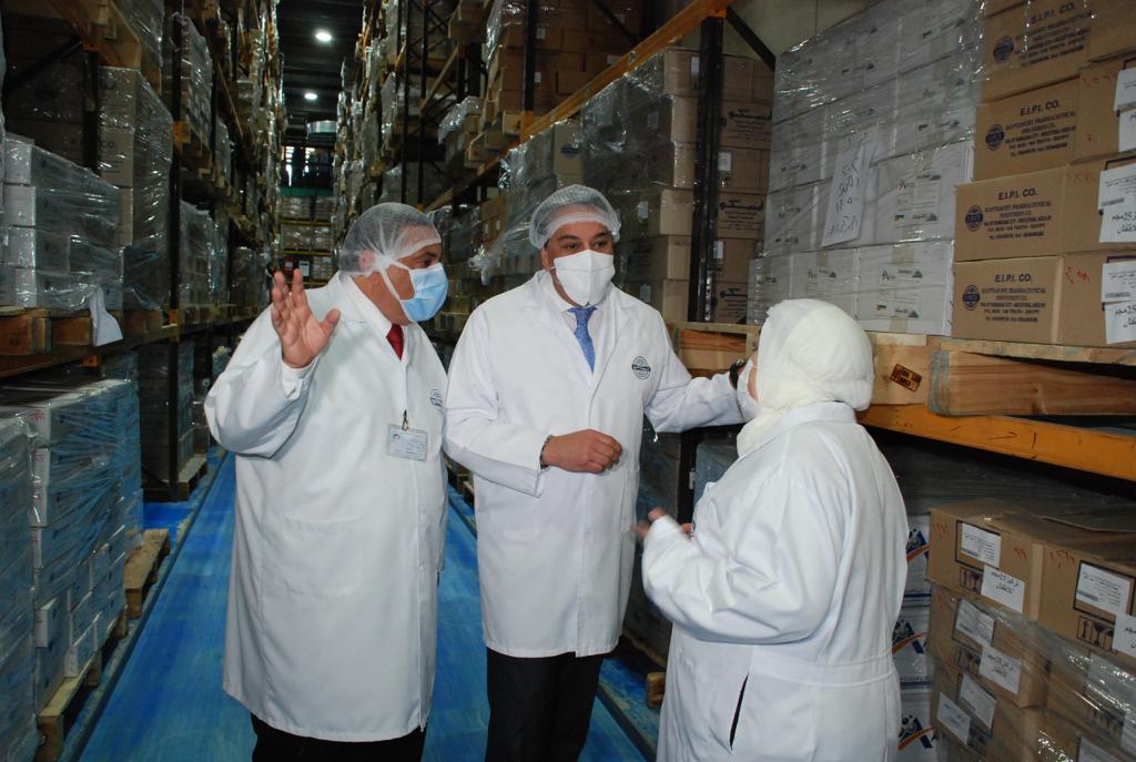 كما تفقد خطوط إنتاج الكبسولات والمراهم والأمبولات والسوائل، في مصنع شركة «إيبيكو» كما تفقد مخازن الشركة المنشأة وفقا لأحدث قواعد التخزين الجيد.