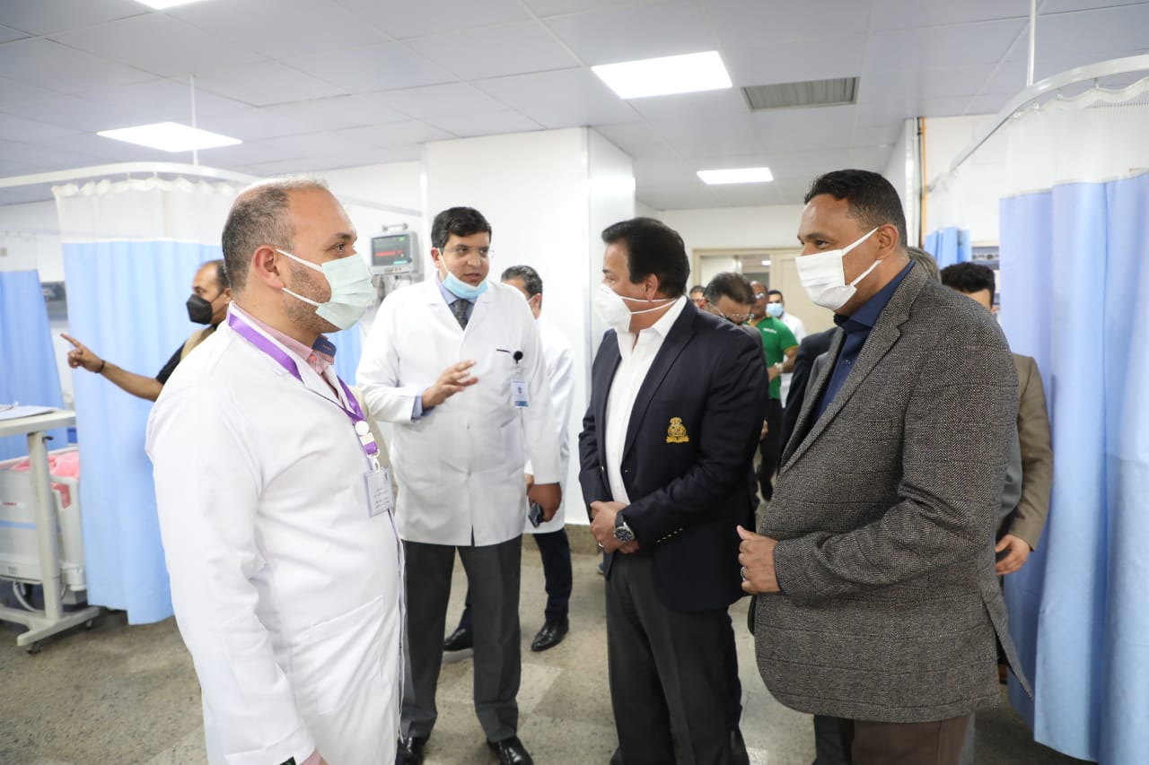 و اختتم جولته بتفقد مستشفى المنصورة الدولي، والذي تصل طاقته الاستيعابية إلى 400 سرير، حيث تفقد الاقسام الداخلية المختلفة للمستشفى، بالإضافة إلى متابعة معدلات تردد المرضى، موضحًا أن المنصورة الدولي من المستشفيات التي شهدت تطورا كبيرا، حيث تم رفع كفاءة المستشفى من خلال إضافة أقسام جديدة شملت (عناية مركزة باطنة وعصبية، عناية مركزة كلى)، بالإضافة إلى رفع السعة الاستيعابية لقسم الرعاية المركزة العامة لتصل طاقته إلى 20 سريرا بدلا من 10 أسرة.