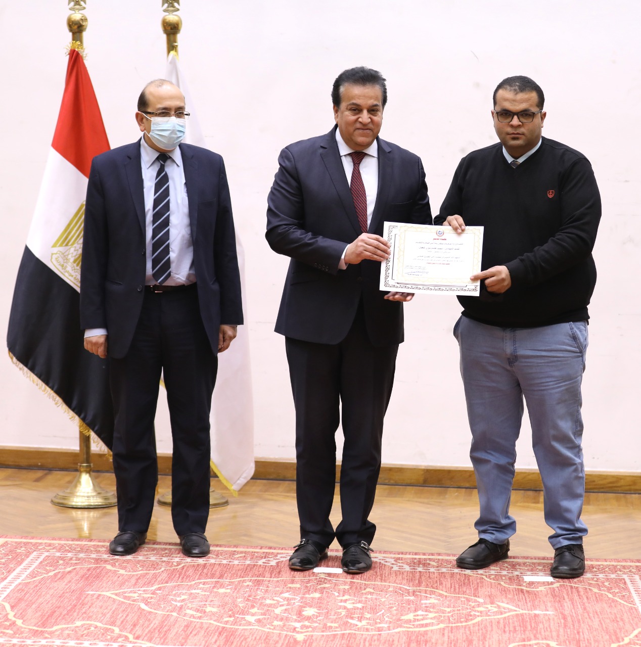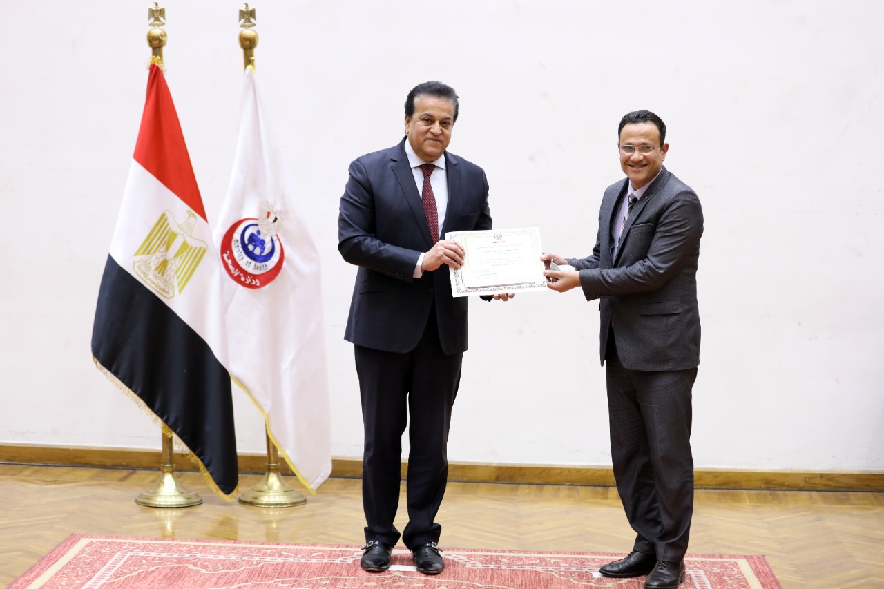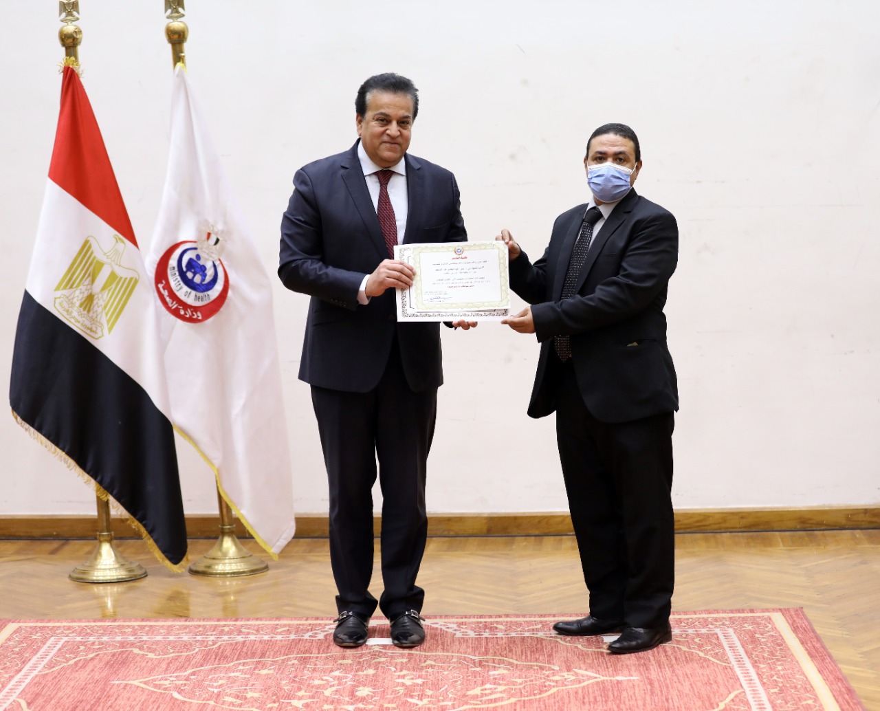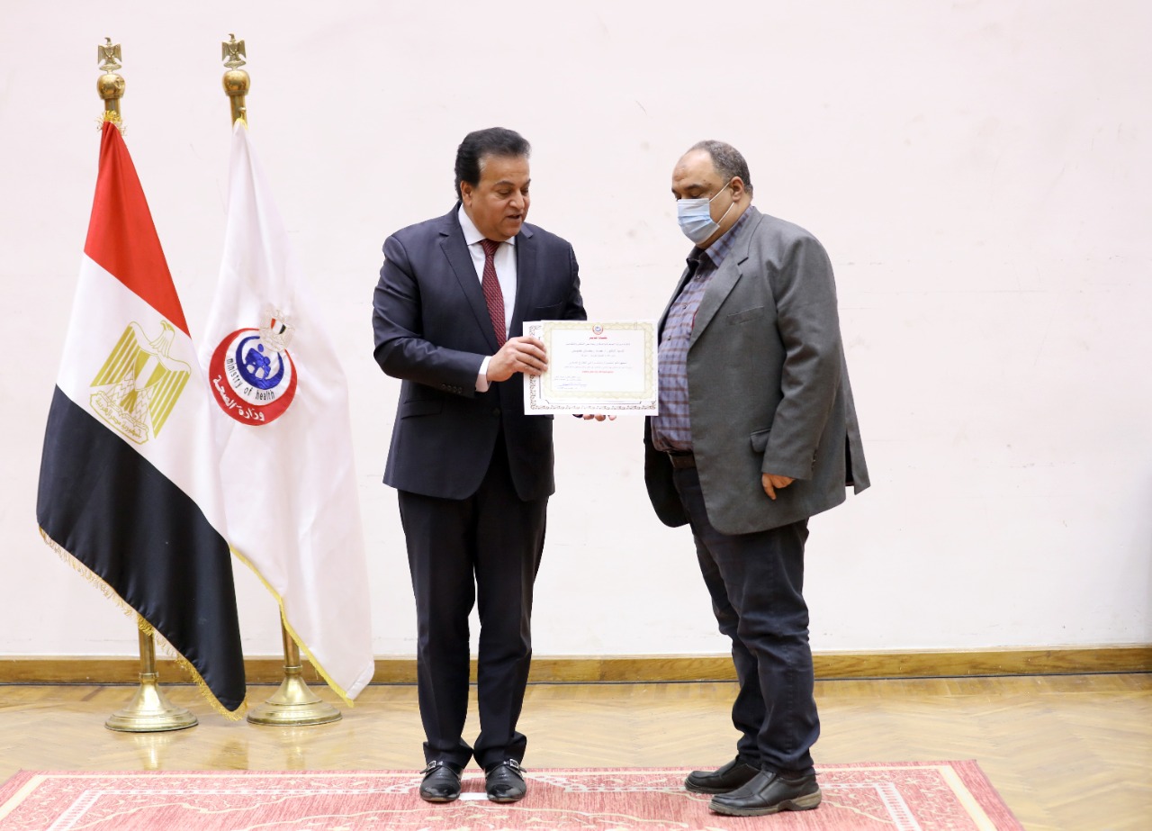 حضر التكريم، الدكتور عمرو قنديل رئيس قطاع الطب الوقائي، والدكتور حازم الفيل رئيس قطاع الطب العلاجي.