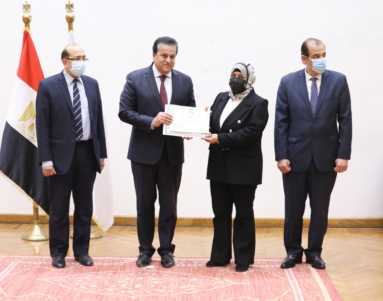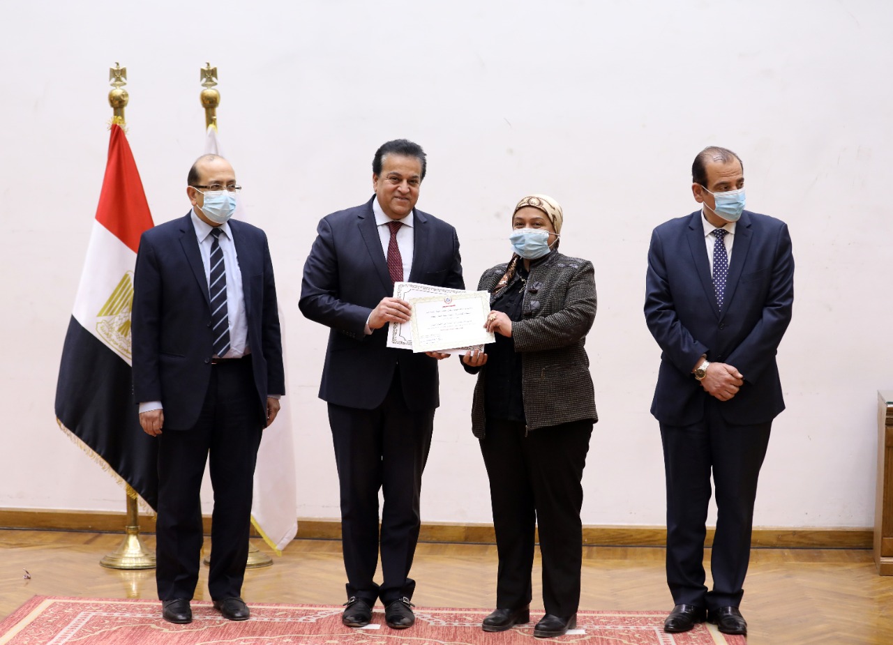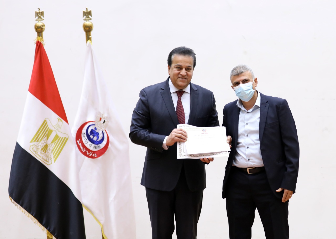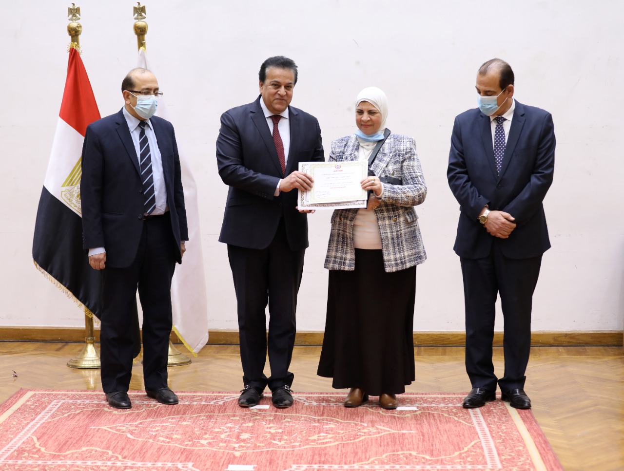 حضر التكريم، الدكتور عمرو قنديل رئيس قطاع الطب الوقائي، والدكتور حازم الفيل رئيس قطاع الطب العلاجي.