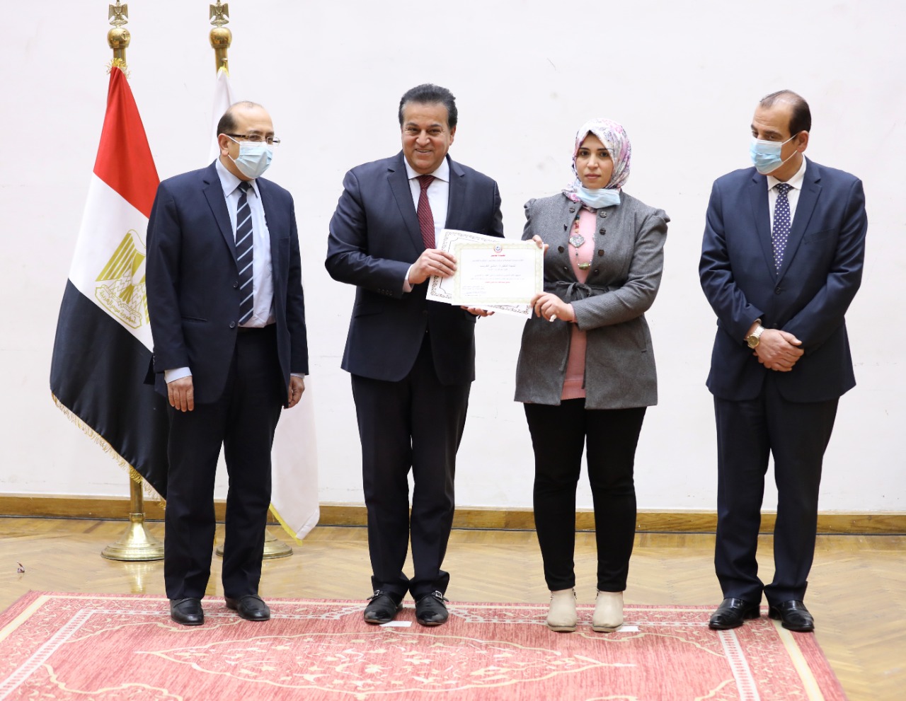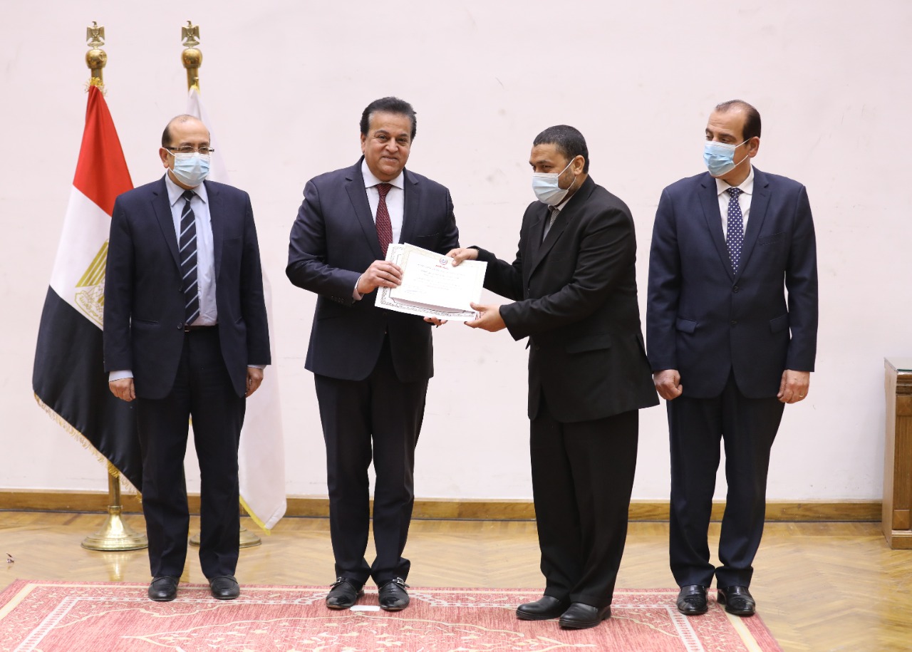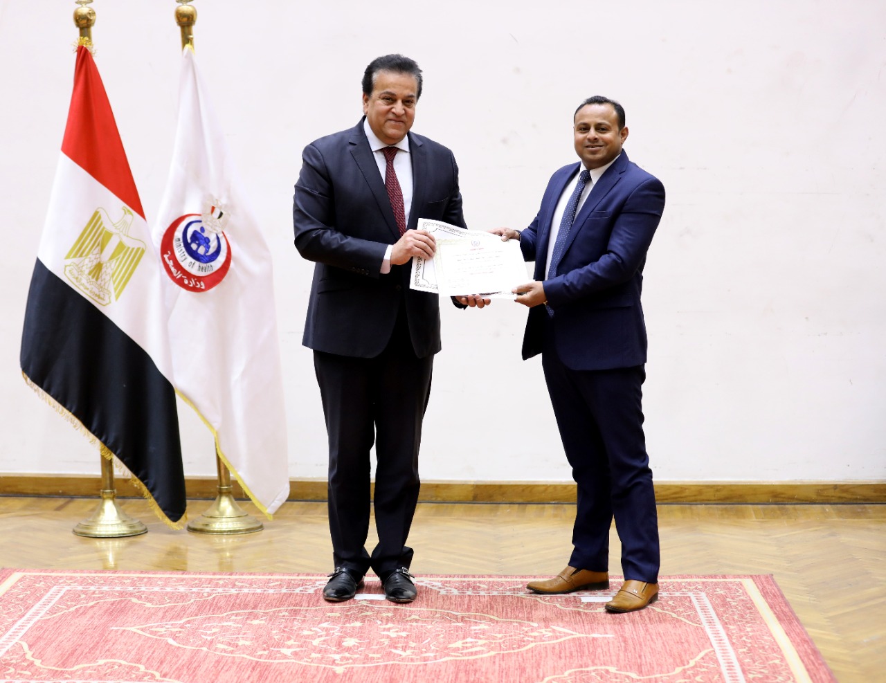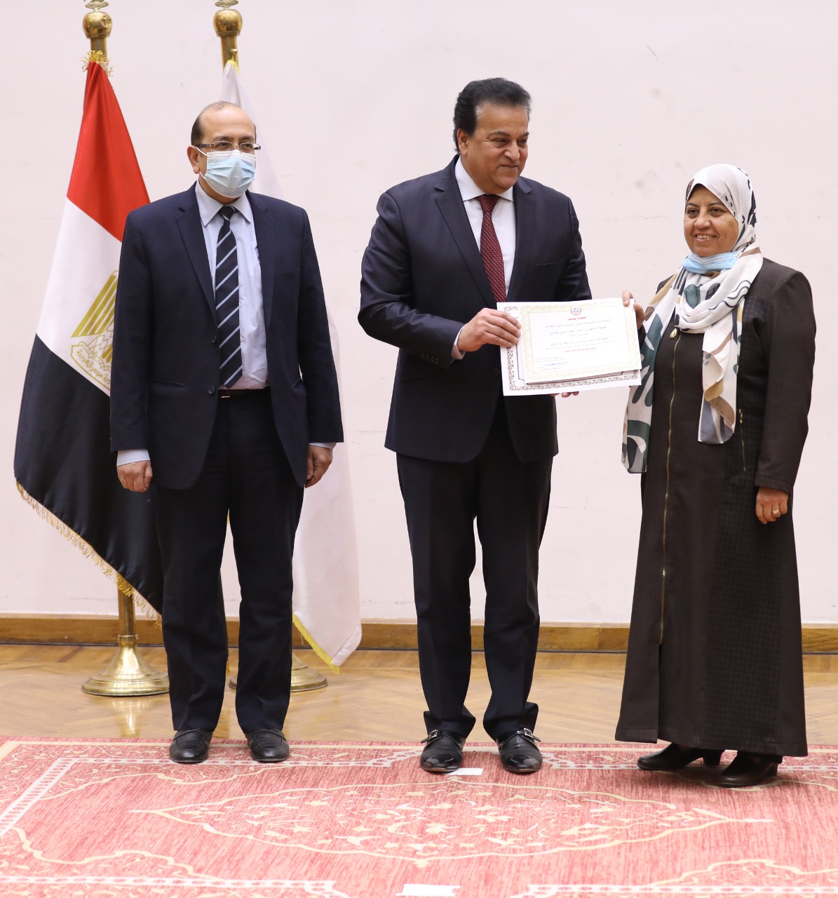حضر التكريم، الدكتور عمرو قنديل رئيس قطاع الطب الوقائي، والدكتور حازم الفيل رئيس قطاع الطب العلاجي.