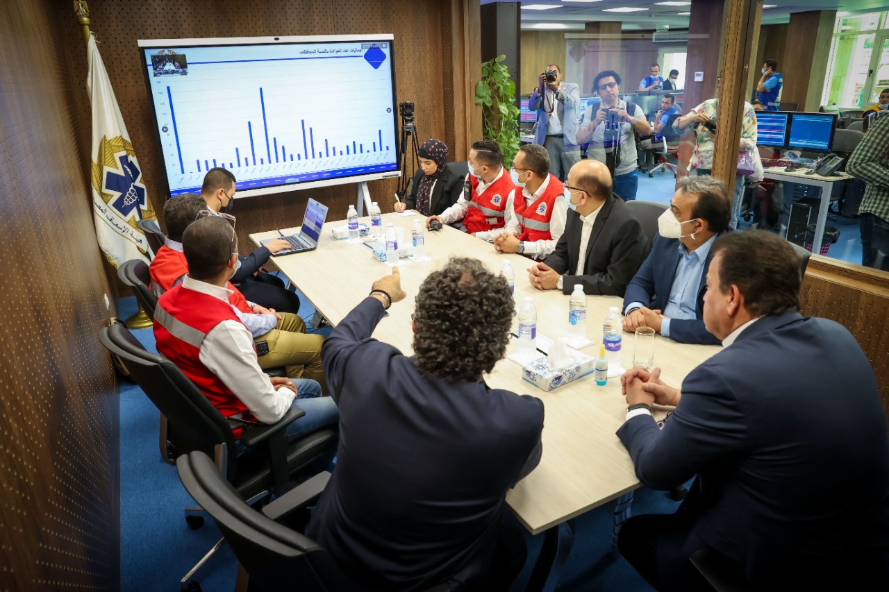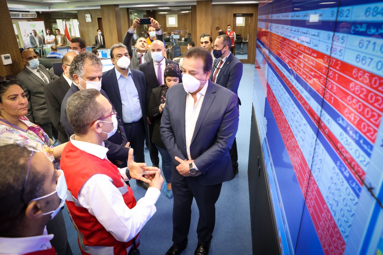 وخلال جولته راجع الوزير خطة العمل المميكنة بالهيئة التي تربط بين كافة المستشفيات ونقاط الإسعاف بجميع محافظات الجمهورية من خلال غرف العمليات المركزية، للتأكد من كفاءة سير العمل بجميع تمركزات الإسعاف، والتي يبلغ عددها 1609 نقطة إسعافية فضلاً عن 11 مركب إسعاف نهري، بطاقة 13 ألف فرد من الأطقم الإسعافية.