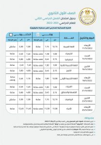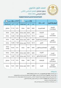 جدول اختبارات نهاية العام الدراسي لطلاب الصف الأول الثانوي
