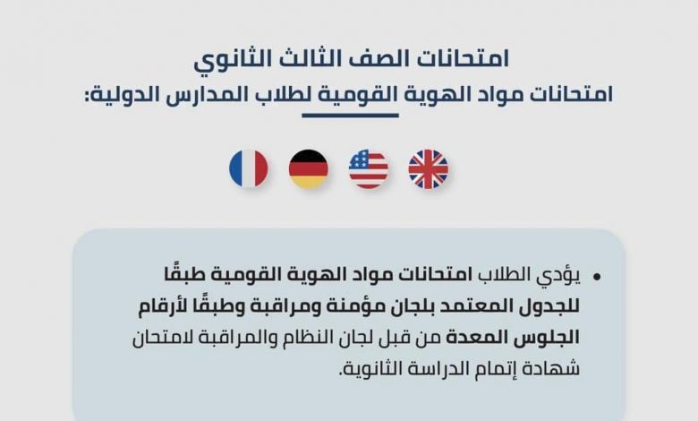 جدول امتحانات مواد الهوية القومية لطلاب المدارس الدولية