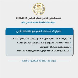 . تُجرى الامتحانات للمواد خارج المجموع يومي١٦، ١٨ يناير ٢٠٢٢