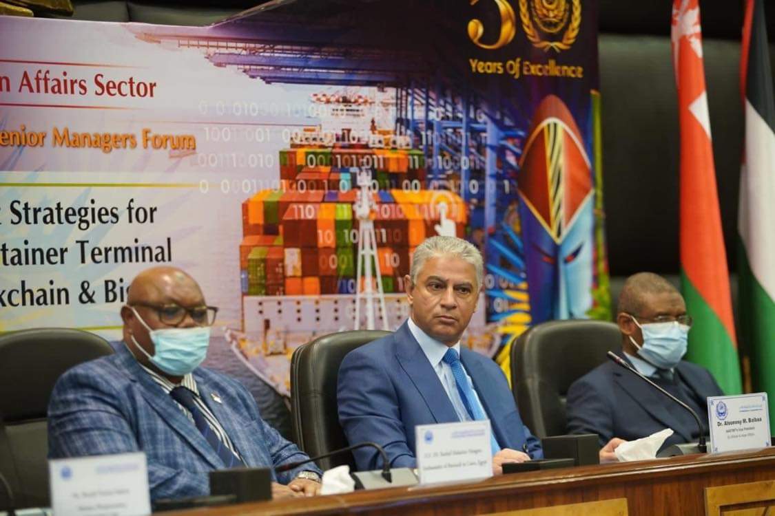 وأشار ” بلبع ” إلي ان المنتدي استمر لمدة خمسة أيام مابين متحدثين من دول اليابان اليونان وايضا خبراء من الصناعة بمصر وخبراء من الاكاديمية العربية للعلوم والتكنولوجيا والنقل البحري، وكانت المناقشات به ثرية ثراء متميز، حيث تبادل الحاضرين للمنتدى من الدول الافريقية المشاركة والذي وصل عددها الي 13 دولة باجمالي 26 مشارك في المناقشات بالاضافة الى مجموعات العمل، والتي من خلالها طرحوا التحديات التي تواجه دولهم في الموضوعات التي تم مناقشتها اثناء المنتدي في مجال استخدام block chain and big data خاصة بعد ماستمعوا من الخبراء في كيفية تطبيق تلك المفاهيم في مجال النقل وبالتحديد في المواني بأنواعها