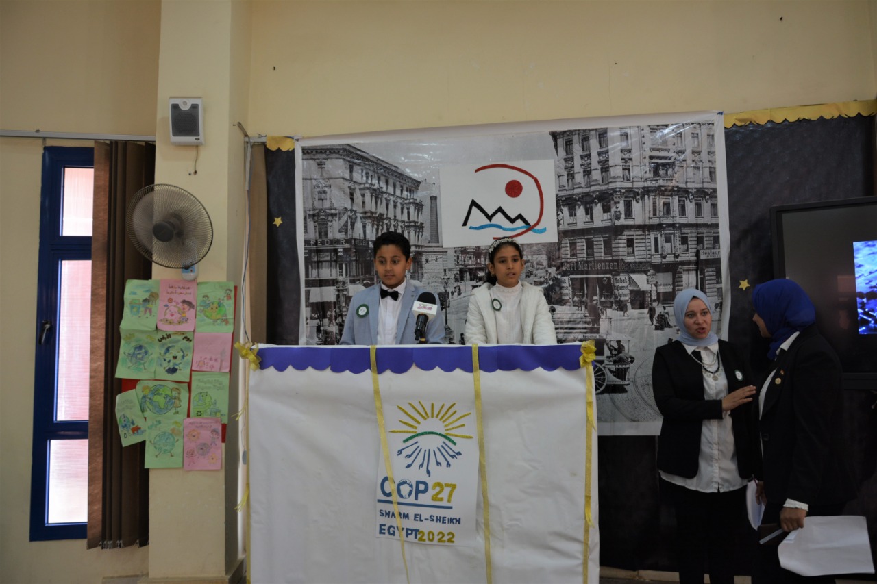 في ضوء توجيهات الدكتور رضا حجازي وزير التربية والتعليم والتعليم الفني، برفع الوعي الطلابي بقضية التغير المناخي، نظمت المدارس المصرية اليابانية نموذج محاكاة لمؤتمر الأطراف لاتفاقية الأمم المتحدة الإطارية بشأن تغير المناخ (COP 27).
