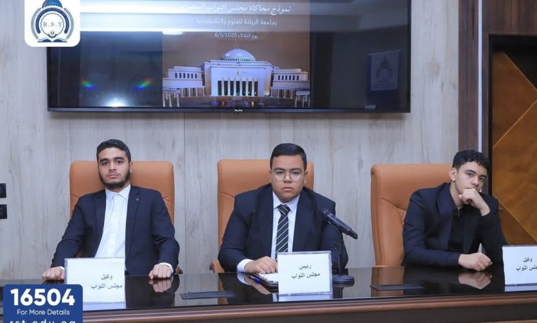 نظم مجلس إتحاد طلاب “جامعة الريادة للعلوم والتكنولوجيا RST”، نموذج محاكاة مجلس النواب، في إطار مبادرة رئيس الجمهورية “بداية جديدة لبناء الإنسان” .