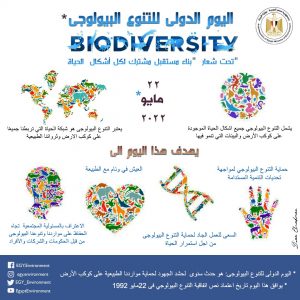 تشارك مصر العالم إحياء اليوم العالمى للتنوع البيولوجى 2022 من خلال الاحتفال على منصات التواصل الاجتماعى لوزارة البيئة والذى يقام هذا العام تحت شعار ” بناء مستقبل مشترك لكل اشكال الحياة ” وذلك بعرض عدد من الفيديوهات والتنويهات للتوعية بالتنوع البيولوجى واهميته للبيئة والإنسان ودور الفرد والمجتمع فى المشاركة فى حماية هذه الثروات الطبيعية والحفاظ عليها .