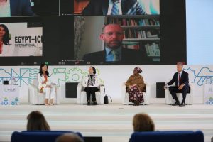 شاركت الدكتورة ياسمين فؤاد وزيرة البيئة فى الحلقة النقاشية ” التحول الاخضر: الفرص والتحديات التى تواجه الدول النامية ” ،والذى عقدت ضمن فعاليات النسخة الأولى من منتدى مصر للتعاون الدولي والتمويل الإنمائي – Egypt-ICF”. بحضور السيدة زينب شمسنا وزيرة المالية والموازنة والتخطيط القومى بجمهورية نيجيريا، والسيد جوناثان كوهين سفير الولايات المتحدة بمصر، كما شارك بالجلسة عبر الفيديو كونفرانس السيد ايان بريمر رئيس مجموعة اوراسيا، والسيد فريد بلحاح نائب رئيس البنك الدولي لمنطقة الشرق الأوسط وشمال افريقيا، والسيد هارى بويد المدير الإدارى للاقتصاد الاخضر والعمل المناخى بالبنك الأوروبي لإعادة الإعمار والتنمية.