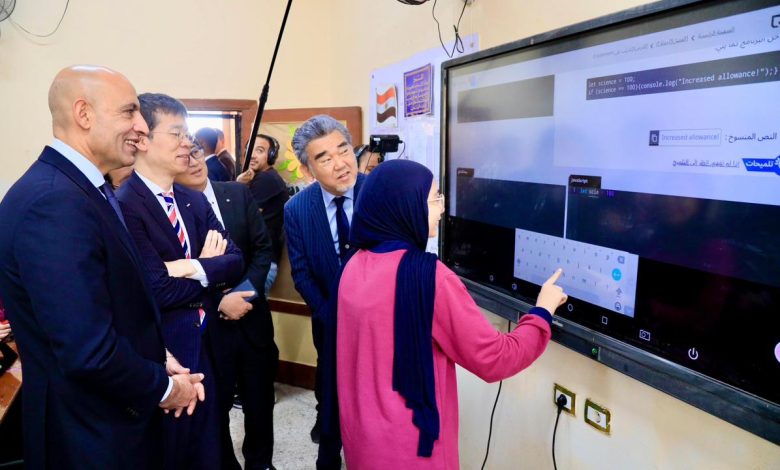 اصطحب محمد عبداللطيف وزير التربية والتعليم والتعليم الفني،ميتسو أوتشي رئيس جامعة هيروشيما، و هيرويوكي تسونيشي رئيس شركة “سبريكس”، في زيارة إلى مدرسة الأورمان الثانوية بنات التابعة لإدارة الدقى التعليمية، لمتابعة تطبيق عملى لدراسة مادة البرمجة والذكاء الاصطناعي على منصة “كيريو” اليابانية داخل الفصول الدراسية.