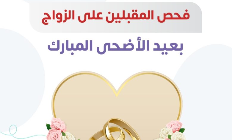 58 مركزًا يعمل لإجراء فحوصات “المقبلين على الزواج” خلال عيد الأضحى المبارك