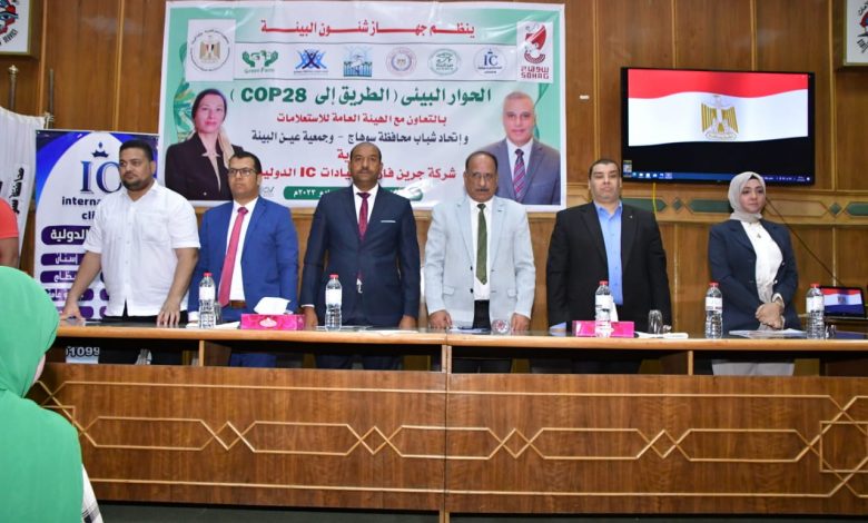 نظم الفرع الإقليمى لوزارة البيئة فى محافظة سوهاج بالتعاون مع الهيئة العامة للاستعلامات ،واتحاد الشباب ، وجمعية عين البيئة ،وشركة جرين فارم مؤتمر الحوار الوطني البيئي ( الطريق لمؤتمر المناخ COP28 )،بقاعة مركز الإعلام ،بمشاركة مؤسسات المجتمع المدني .